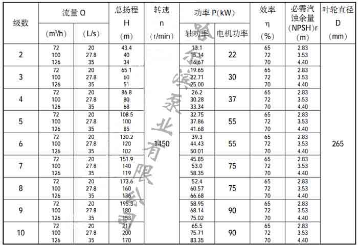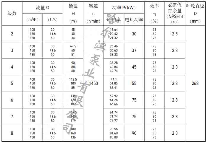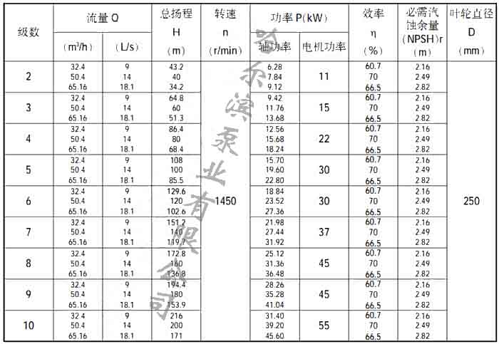 40DL型泵性能參數表